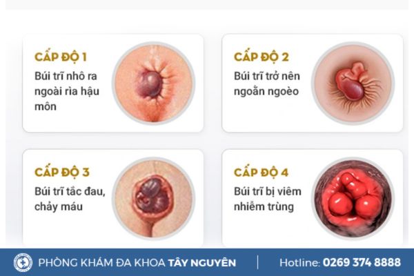 Dựa vào tình trạng bệnh mà trĩ hỗn hợp được chia thành 4 cấp độ như sau: